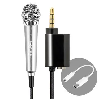 코시 유선 스마트폰 휴대용 마이크 + C타입 to AUX 젠더 세트, 실버(마이크), MK3060